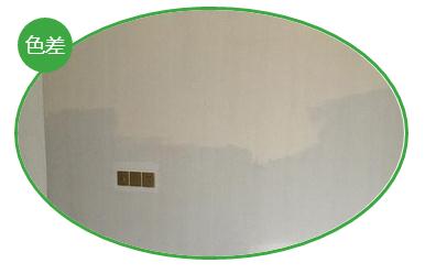 3、由于生产人员失误将不同等级的原料参杂在一起生产引起的色差或将不同品牌的产品批刮在同一面墙上而引起的色差。