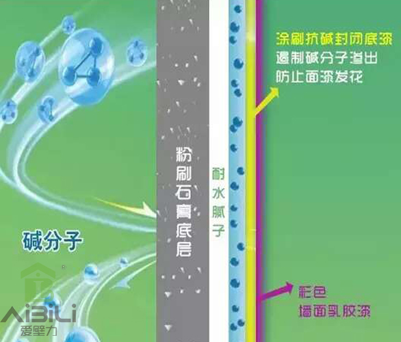 2 用低强度的粉刷石膏打底,上墙干燥后强度很低,用手干擦就会有掉粉现象,在此基础上批刮高强度的耐水腻子,容易造成空鼓、起皮、脱落现象,并且吸水性太强,大大增加了后续工作的难度。 建议使用爱壁力墙固进行基层固化处理,或者是铲除原有的基层,使用爱壁力粉刷石膏底层重新找平处理。3 在一些墙角、裂缝处用耐水腻子去填补找平,因而出现开裂现象。由于耐水腻子一次不能批刮过厚,否则会出现自身收缩开裂,所以不要用耐水腻子去找平,对于不平整的墙体和裂缝建议使用爱壁力嵌缝石膏找平。